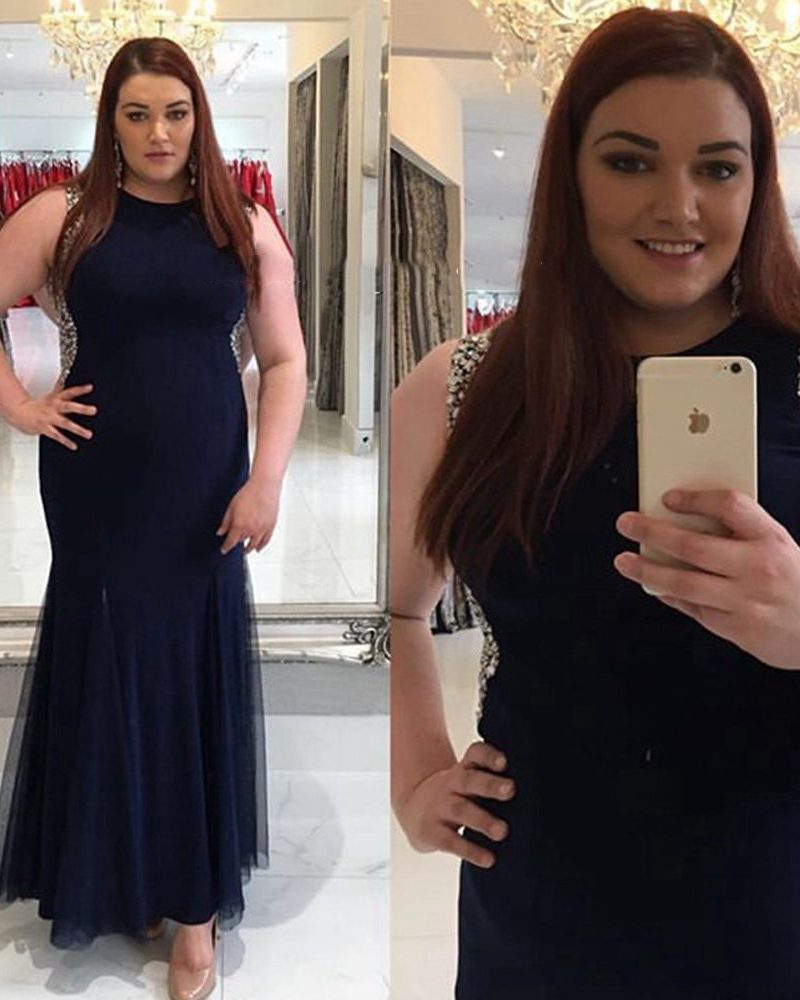 Elegant Navy Blue Evening Gown with Beads Mermaid Long Prom Dress for Special Occasions