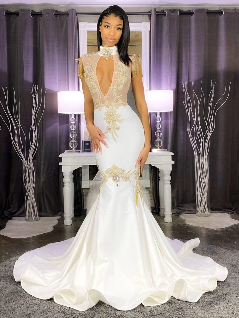 Sexy African Style Evening Dress High Neck Long Mermaid Prom Gown for Formal Occasions