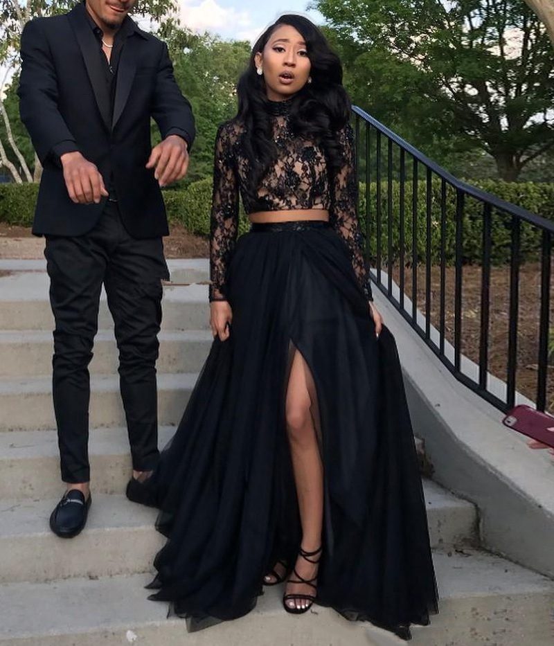Elegant Black Two Pieces Set Sexy Split Design Long Prom Dress