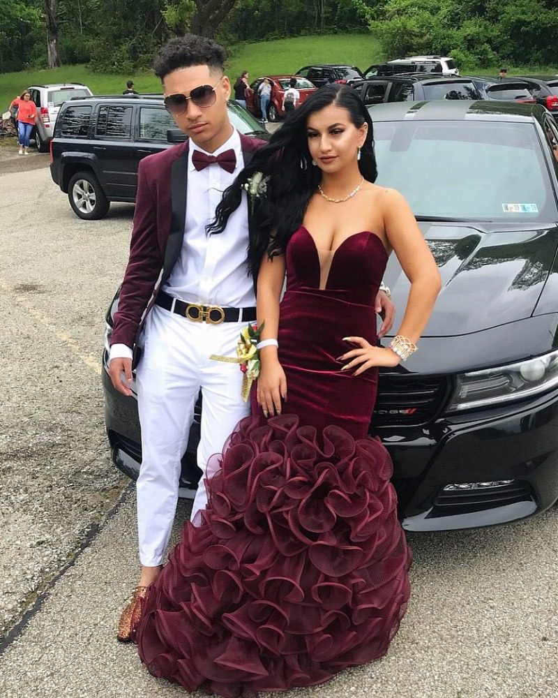 African Style Burgundy Velvet Evening Gown Sexy Mermaid Long Prom Dress for Special Occasions